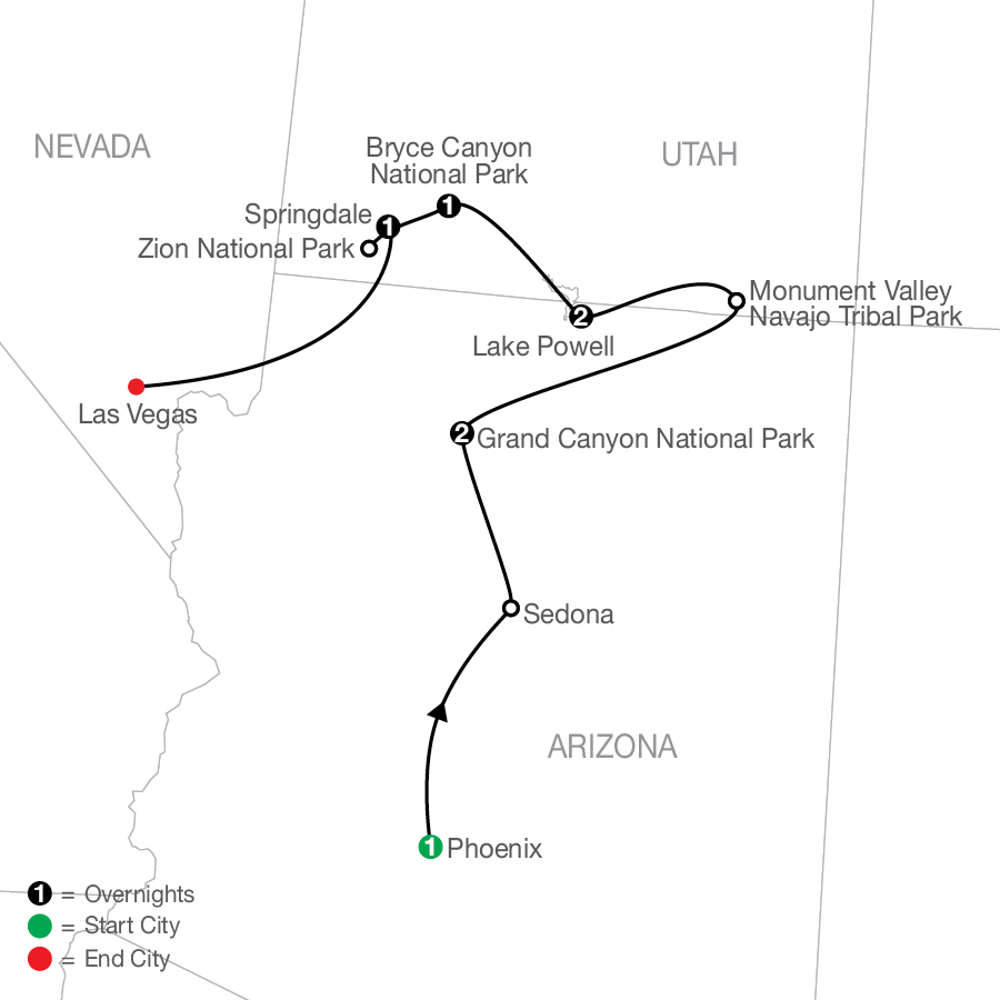 Beauty, awe, and wonder await across Arizona and Utah on this journey through three remarkable national parks, Lake Powell, and the sandstone landscapes of the Navajo Nation. From sunrise to sunset at the Grand Canyon, you’ll experience the vibrant desert colors of Bryce Canyon, Zion National Park, and Antelope Slot Canyon. Travel through the Zion–Mount Carmel Tunnel for scenic access to Zion. Explore Monument Valley with a Navajo guide on a 4-wheel-drive tour among towering buttes and mesas. Finish with the red-rock vistas of Sedona and the desert charm of Phoenix.